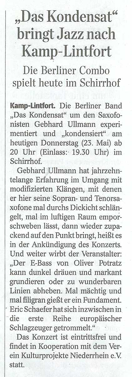 wir4kultur "Das Kondensat" bringt Jazz nach Kamp-Lintfort NRZ | 23.05.24, Kamp-Lintfort Zurück Weiter